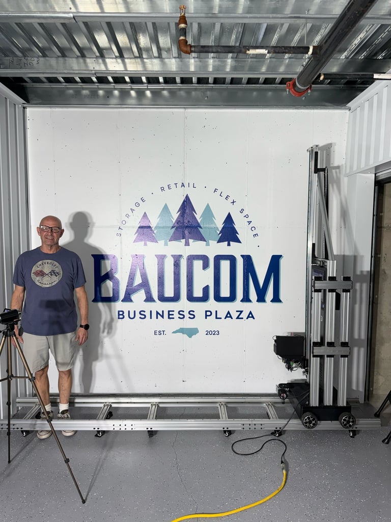 Just finished the Baucom logo. Zoom in and checkout the seams in the wall. A ton of imperfections and it looks great. You can also get a lookat the tracks in our rail system.